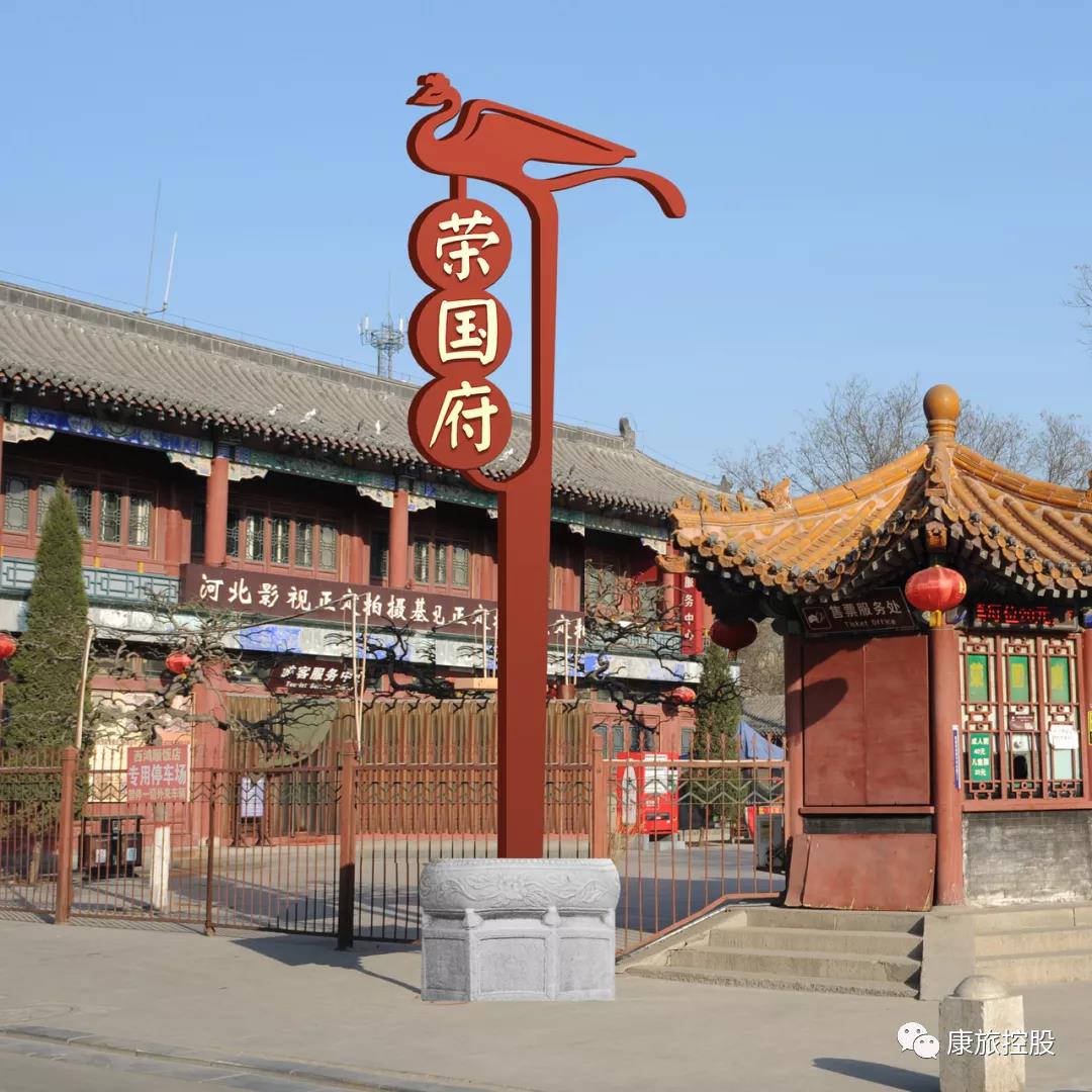 (2)榮國府,是以明末清初文化為背景的仿古建筑群,是根據(jù)中國古典名著《紅樓夢》中所描繪的“榮國府”設(shè)計和建造的。1983年,中央電視臺籌拍電視劇《紅樓夢》,尋找地方政府共建“榮國府”臨時外景基地。時任河北省正定縣委書記的習(xí)近平同志看到了商機,認為將“榮國府”建成永久性建筑,會隨著《紅樓夢》的播出帶動正定縣旅游業(yè),果然,1987 年“榮國府”景區(qū)隨著電視劇《紅樓夢》的播出,使正定知名度大大提高,當(dāng)年有 130 萬人次前來參觀游覽,很快就收回了投資?!皹s國府”景區(qū)極大地帶動了正定旅游業(yè)的發(fā)展,開創(chuàng)了旅游業(yè)“正定模式”。《紅樓夢》別名《金陵十二釵》,我們的景觀小品就以鳳釵和燈籠的造型進行設(shè)計,凸顯紅樓文化。