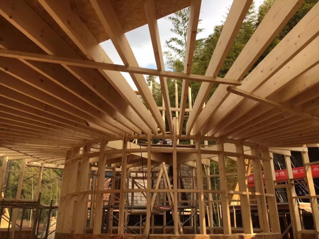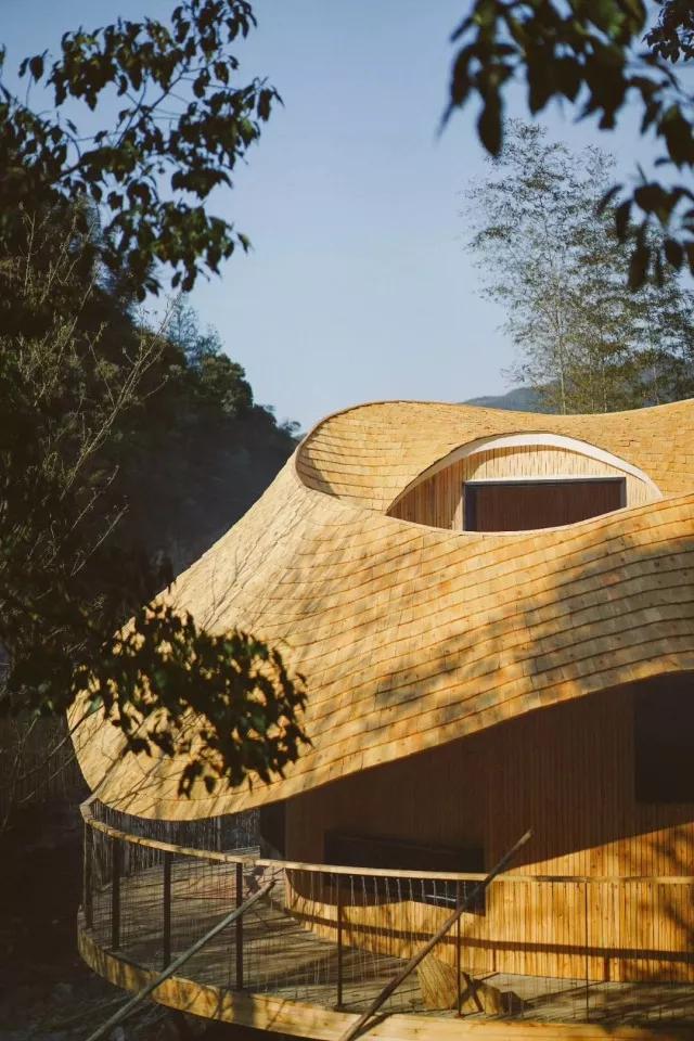為了呈現(xiàn)完美的樹蛙部落,對環(huán)境的干擾降低到最小,通過全原木材質(zhì)拉近與森林的距離。