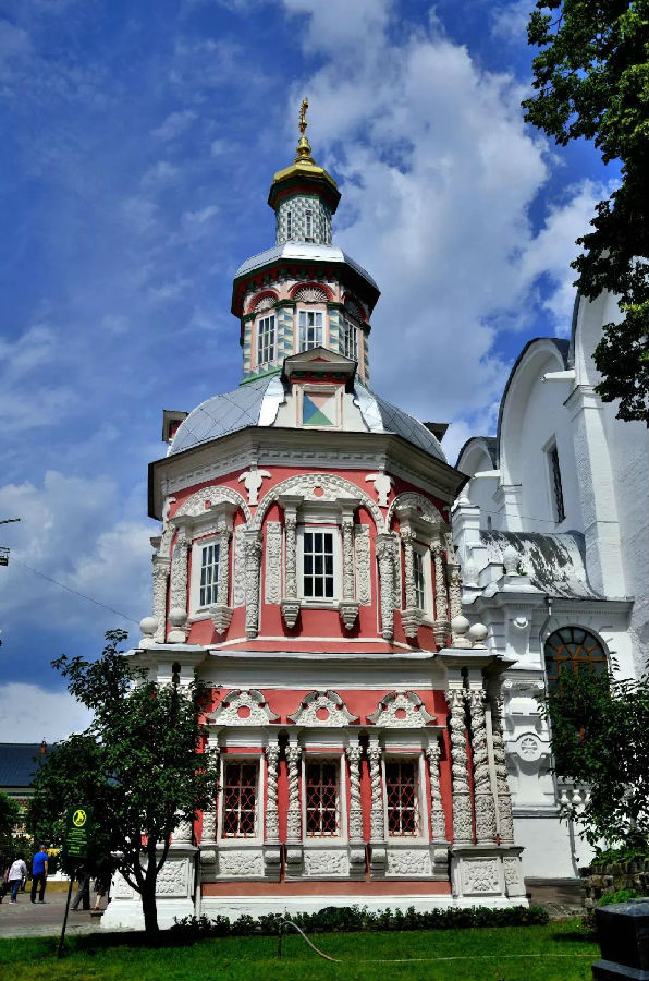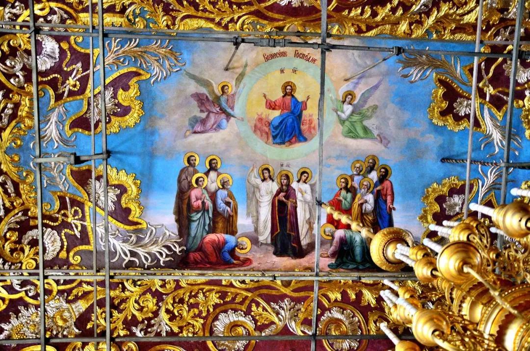 這里是一座美麗如童話般的建筑群:塔尖直指蒼穹代表著虔誠與忠貞,鐘樓高聳入云卻又精雕細(xì)琢,壁畫色彩濃郁極具視覺沖擊力,哪怕是一個(gè)小亭子從頭到腳處處可見匠心。你想象不出性格彪悍的俄羅斯粗漢子,怎么偏偏像個(gè)巧妹子,鼓搗出這么精美的東西!