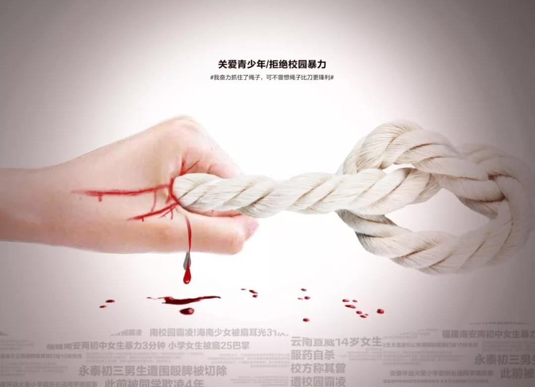 繩子:一個經歷過校園暴力的人,肉體受到傷害,心靈蒙上陰影。我選擇和他對抗,我抓住了繩子,沒想到繩子后邊站著一堆人,繩子比刀子還鋒利。