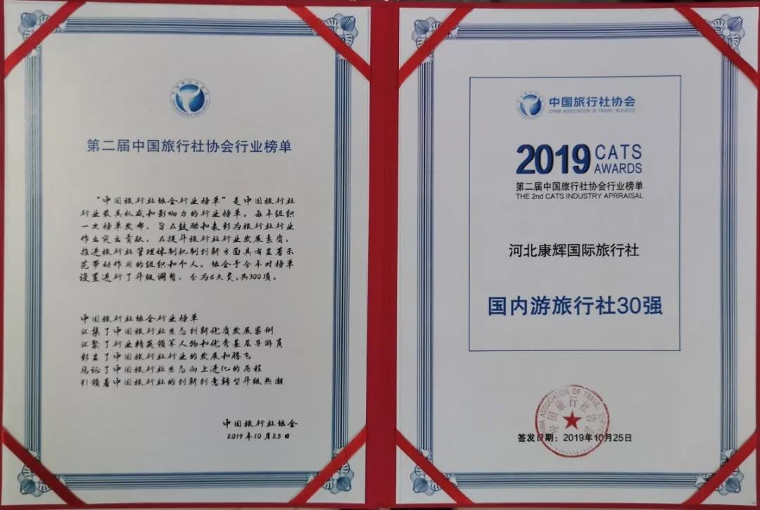 榮獲“國內(nèi)游旅行社30強(qiáng)”