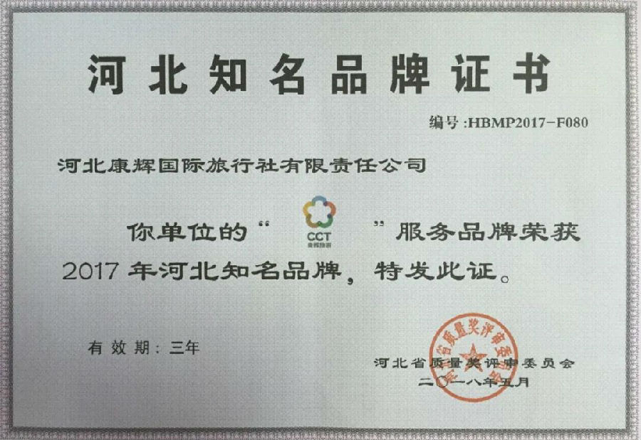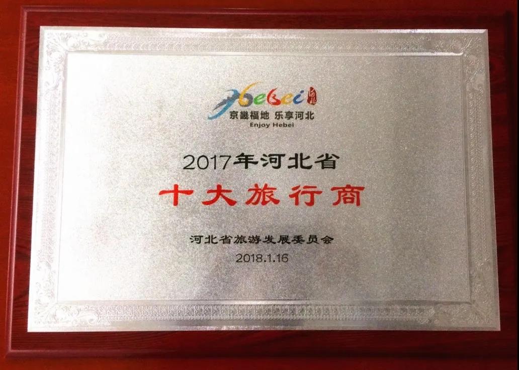 榮獲2017年河北省十大旅行商