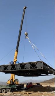 在依托理論對(duì)設(shè)想進(jìn)行反復(fù)推演后,集團(tuán)工程人員建造了一艘用于移植臨河大樹的水上鋼結(jié)構(gòu)浮式平臺(tái)船。這艘平臺(tái)船擁有由若干豎梁焊接在一起、上下平行的底層框架和頂層框架,框架內(nèi)通過若干槽鋼基材加強(qiáng)連接,保證堅(jiān)固性與穩(wěn)定性。底層與頂層框架之間焊有均勻分布的若干浮筒,頂層框架上方設(shè)置有密度高、強(qiáng)度高的防腐木板層,防止水生蟲的寄生。平臺(tái)船的中心還設(shè)有盛放口,盛放口連接下凹結(jié)構(gòu),下凹結(jié)構(gòu)中放置有移栽大樹的根系護(hù)框。這艘讓大槐樹躲避路途困頓,迎來美好新生的巨大船只,被時(shí)任西柏坡鎮(zhèn)書記命名為“諾亞方舟”。