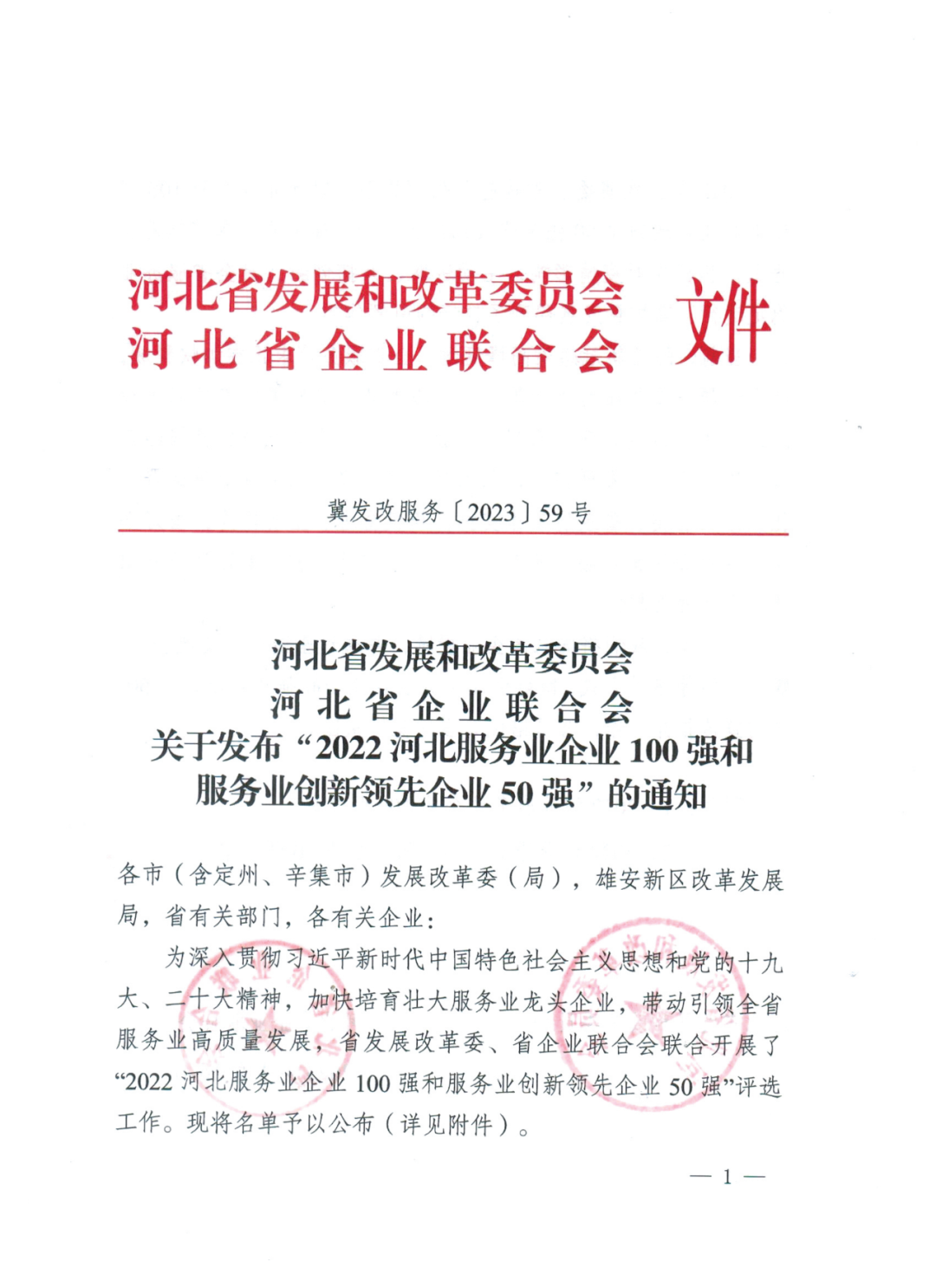 1月17日,河北省發(fā)展改革委、省企業(yè)聯(lián)合會共同發(fā)布“2022河北服務業(yè)企業(yè)100強”名單,康旅控股集團位列其中!再度蟬聯(lián)本榮譽,充分體現(xiàn)了社會各界對集團的高度認可!