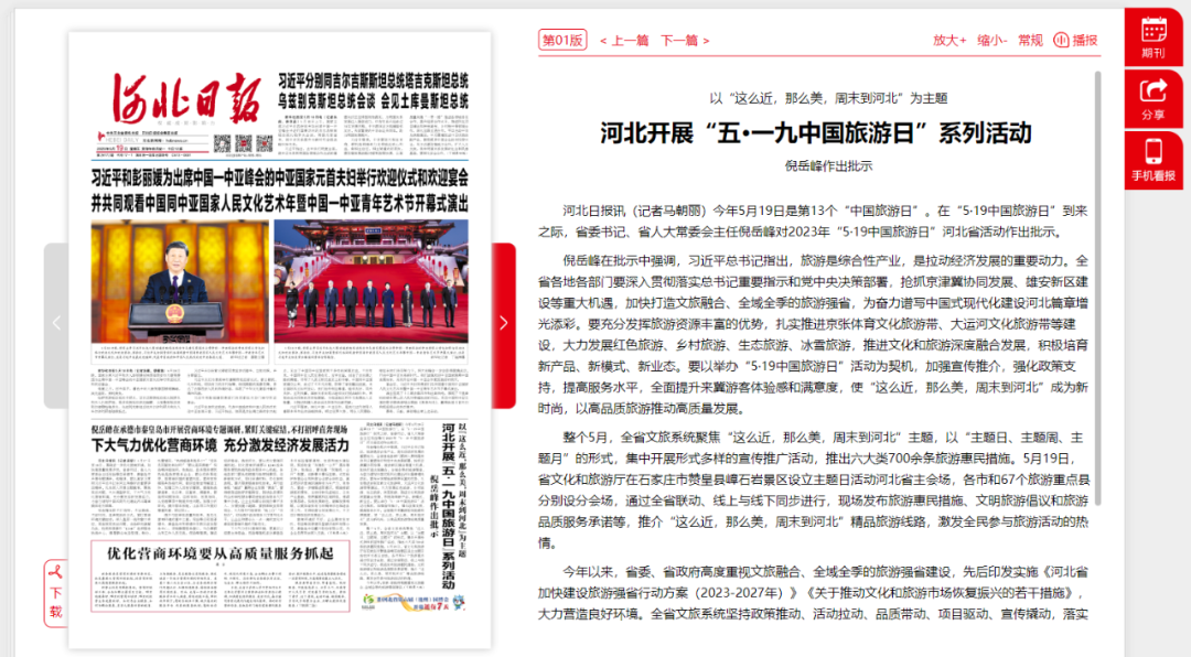 省委書(shū)記、省人大常委會(huì)主任倪岳峰對(duì)2023年“5?19中國(guó)旅游日”河北省活動(dòng)作出批示:習(xí)近平總書(shū)記指出,旅游是綜合性產(chǎn)業(yè),是拉動(dòng)經(jīng)濟(jì)發(fā)展的重要?jiǎng)恿?。全省各地各部門(mén)要深入貫徹落實(shí)總書(shū)記重要指示和黨中央決策部署,搶抓京津冀協(xié)同發(fā)展、雄安新區(qū)建設(shè)等重大機(jī)遇,加快打造文旅融合、全域全季的旅游強(qiáng)省,為奮力譜寫(xiě)中國(guó)式現(xiàn)代化建設(shè)河北篇章增光添彩。要充分發(fā)揮旅游資源豐富的優(yōu)勢(shì),扎實(shí)推進(jìn)京張?bào)w育文化旅游帶、大運(yùn)河文化旅游帶等建設(shè),大力發(fā)展紅色旅游、鄉(xiāng)村旅游、生態(tài)旅游、冰雪旅游,推進(jìn)文化和旅游深度融合發(fā)展,積極培育新產(chǎn)品、新模式、新業(yè)態(tài)。要以舉辦“5·19中國(guó)旅游日”活動(dòng)為契機(jī),加強(qiáng)宣傳推介,強(qiáng)化政策支持,提高服務(wù)水平,全面提升來(lái)冀游客體驗(yàn)感和滿意度,使“這么近,那么美,周末到河北”成為新時(shí)尚,以高品質(zhì)旅游推動(dòng)高質(zhì)量發(fā)展。