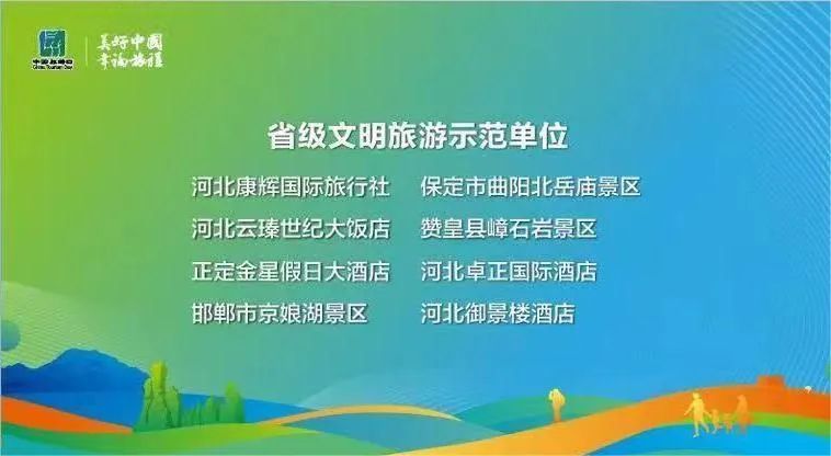 活動(dòng)現(xiàn)場(chǎng),舉行了國(guó)家級(jí)文明旅游示范單位、省級(jí)文明旅游示范單位、省級(jí)誠(chéng)信文明示范單位的授牌儀式。隸屬于康旅控股集團(tuán)的河北康輝國(guó)際旅行社被評(píng)為“省級(jí)文明旅游示范單位”。